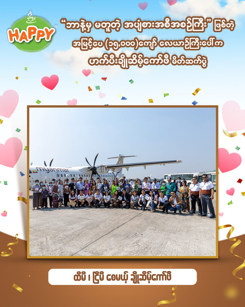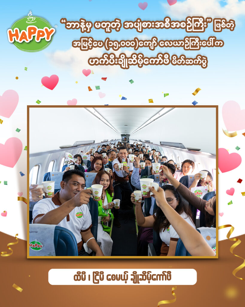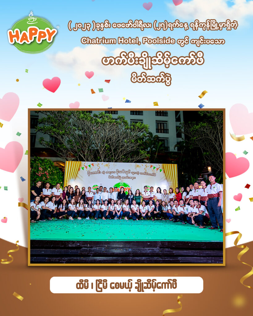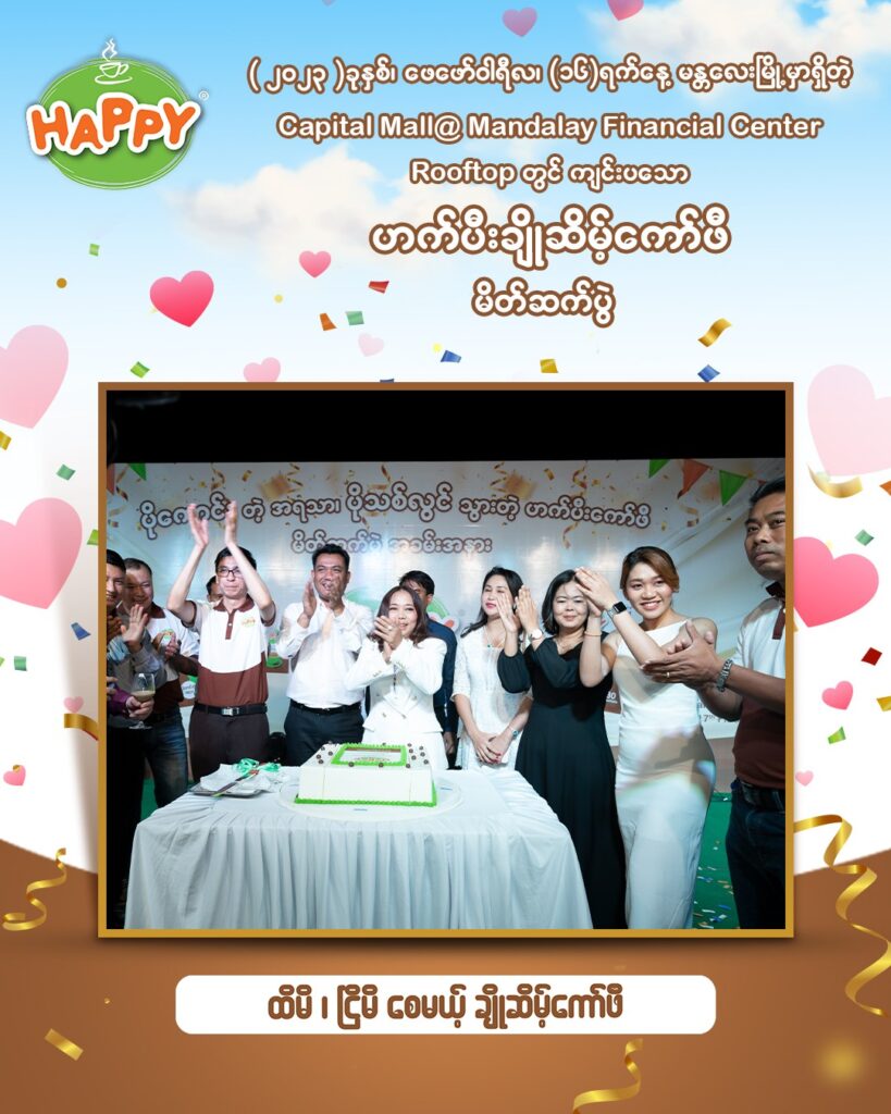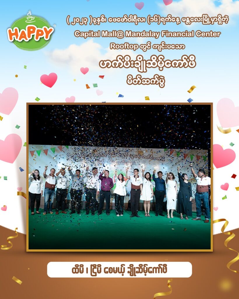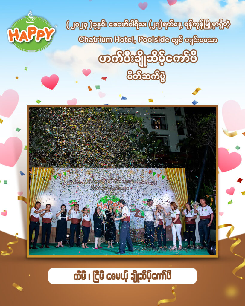 Capital Diamond Star Group (CDSG) ၏ Business Unit တစ်ခုဖြစ်သော Branded Consumer Food မှ ဟက်ပီးရဲ့ မြန်မာနိုင်ငံမှာ အရမ်းကိုထူးခြားပြီး ဘာနဲ့မှမတူတဲ့ ထိမိငြိမိစေတဲ့ ပိုကောင်းတဲ့အရသာနဲ့ အသွင်သစ် ဟက်ပီးချိုဆိမ့်ကော်ဖီ မိတ်ဆက်ပွဲ အခမ်းအနားများကို ၂၀၂၃ ခုနှစ် ဖေဖော်ဝါရီလ (၁၄) ရက်နေ့တွင် အမြင့်ပေ (၁၅,၀၀၀) ကျော် မြင့်တဲ့ ဝေဟင်ကြီးထဲတွင် Myanmar National Airline ကို တစ်စီးလုံး သီးသန့် ပျံသန်းရင်းဖြင့်လည်းကောင်း၊ ဖေဖော်ဝါရီလ (၁၆) ရက်နေ့တွင် မန္တလေးမြို့ ၊ ချမ်းအေးသာဇံမြို့နယ်၊ (၂၇)လမ်းနှင့် (၂၈)လမ်းကြား၊ လမ်း (၈၀)မှာ တည်ရှိတဲ့ Mandalay Financial Center ရဲ့ Rooftop တွင် လည်းကောင်း၊ ဖေဖော်ဝါရီလ (၂၇) ရက်နေ့တွင် ရန်ကုန်မြို့ Chatrium Hotel , Poolside တွင် လည်းကောင်း ဟက်ပီးကော်ဖီချစ်သူ ကုန်သည်ကြီးများနှင့် အတူတူ အောင်မြင်စွာကျင်းပခဲ့ပါသည်။